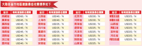 2.維持最基本品質費用:視各省市地區購物佣金情況訂定最基本品質收費標準如次頁。