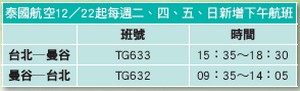 泰國航空台灣區總經理齊聖禮表示,十分感謝同業對於泰航長久以來的支持,泰航將持續與同業攜手合作,開創市場無限榮景。泰國航空提供台灣每天2 班直飛曼谷的航班,也可由曼谷輕鬆轉往歐、美、亞、大洋洲、非5大洲,能為同業與旅客提供最便捷的旅程選擇。此外,為了提供同業更多元的操作選擇,泰國航空自12/22起,每週增加二、四、五、日下午航班飛往曼谷,搭配原有航班,早、中、晚每週18班貼心的航班安排,不論旅遊洽公將更加便利。