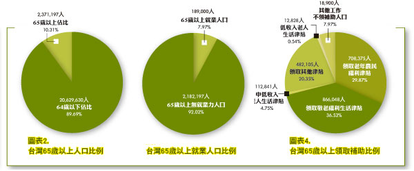 消費市場逐漸老年化是大勢所趨,因此各產業必須關注的焦點,也從勞動市場延伸至退休市場,使得退休人士的消費能力備受矚目。目前,台灣65歲以上高齡人口的收入來源有9成需要依靠政府補助,僅1成不需接受政府經濟補助,對於消費市場而言,具備消費力的老年人口約有20萬人左右,對於旅行社而言,銀髮族旅遊產品會成為未來產品趨勢。