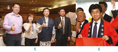 5.(左起)汎佳旅行社副總經理梁廷佑、鹿兒島縣觀光聯盟海外誘致部海外誘致課觀光誘致推進員森田美紀子、華航台灣地區行銷協理李献光、指宿白水館營業企劃廣報課長高田吉範。6.九州推進機構海外誘致推進部部長武田誠一歡迎華航考察團到訪。