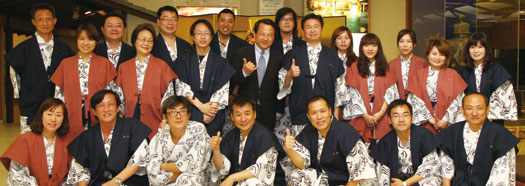 (第二排著西裝者)指宿白水館代表取締役社長下竹原啟高與華航考察團合影。