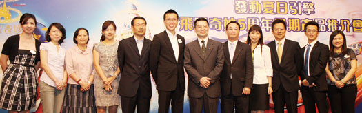 香港迪士尼樂園來台舉辦暑期產品推介會,(左起)香港迪士尼樂園台灣銷售代表賴儀穎、港旅局市場推廣及公共關係經理吳亞穎、香港航空台灣區營業部經理張令儀、港龍航空客運業務代表黃兆雯、國泰航空客運業務副理劉經綸、香港迪士尼樂園度假區大中華區旅遊銷售總監梁浩昌、華航台北分公司行銷策劃部經理陳乾儀 客運營業部經理李宜洲、長榮航空客運本部營業部直客行銷課長陳佩樺、香港航空業務經理吳勇沛 長榮航空客運本部營業部直客行銷課黃資堯、香港迪士尼樂園度假區銷售經理黎秋玲。