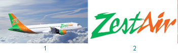 1.飛龍航空台北─長灘島航線,採用AIR BUS 320 機隊。(圖片提供>東聯旅行社)2.飛龍航空(Zest Air)LOGO。(圖片提供>東聯旅行社)