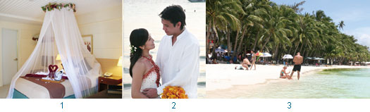 1.長灘島Patio Pacific Hotel飯店為新人浪漫佈置。2.長灘島成為婚禮蜜月熱門目的地。3.長灘島近年成為火紅度假勝地。