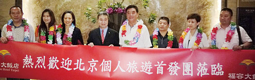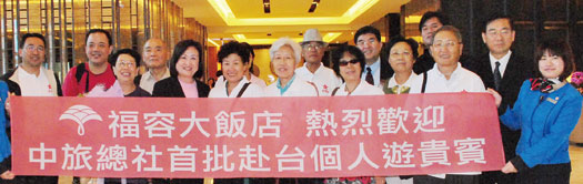 ▲台北福容大飯店歡迎陸客首發團蒞臨,台北福容大飯店副總經理沈中啟(左4)親自接待。
