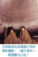 另一深受旅客喜愛的則是汗蒸幕(Han Jeung Mak),指的是以石頭堆起的一個窟的形狀,主要是不讓熱氣散發出去,藉由燃燒松樹等,釋放出大量熱能,也因溫度較高,約10分鐘左右最合適。最近韓國的汗蒸幕與熱療室也廣受年輕人喜愛,成為他們約會時或朋友聚會時的場所。室內的設施也越來越高級,休息區也配置大螢幕播放電影,還提供短袖T-shirt、短褲及洗浴設施。此外,首爾地區的熱療室內都會包含汗蒸幕,將兩者合而為一。