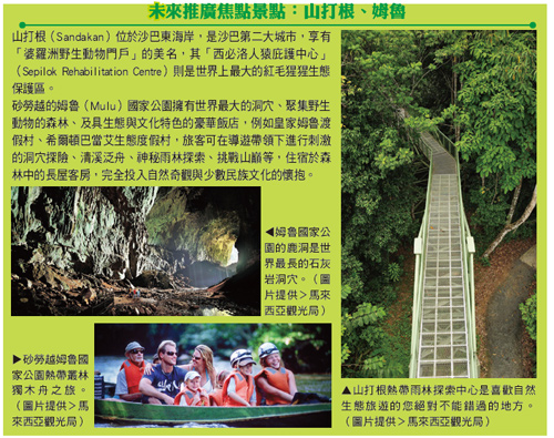 目前馬來西亞最受到台灣旅客歡迎的景點是沙巴、吉隆坡等地,處長禾潤表示,未來馬觀局將再推廣沙巴的山打根(Sandakan)、砂勞越的姆魯國家公園(Mulu National Park),並希望促成航空公司包機前往。馬觀局長期以來與旅行社、航空公司保持密切合作,今年在古晉、吉隆坡舉辦的高爾夫球賽,即與業者合作促進旅遊團前往,華航11╱2復飛高雄─吉隆坡,也與旅行社業者包裝產品,並推出首波優惠。