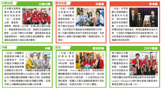 撰文.攝影>蔡雅雯.賴靖筑.黃千珮 今年日本館創下ITF國際旅展國家館展攤規模最大的紀錄,總計有100個攤位出展。除了充滿日本文化的演出與好禮贈送,今年更納入台灣各家銷售日本旅遊商品的旅行社共創雙贏。
