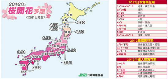 春季是日本賞櫻的季節,對業者來說,行之有年的賞櫻產品,更是每年春季商品的重頭戲之一。從2010開始日本提供櫻花前線預報的單位,已從氣象廳改為氣象協會,而今年度的櫻花前線預測,也已經在2╱1公布於氣象協會的網站上(http:// www.jwa.or.jp)。根據業者表示,一掃去年311的陰霾,今年整體春季的賞櫻市場,目前3∼4月的買氣正陸續湧現,整體市場熱度堪稱令人期待。另外在賞櫻商品的規劃上面,大多是以原有的行程當中加入賞櫻元素,地點選擇上仍以東北、關西、關東以及九州等地區為重點。根據資料指出,日本人最愛的賞櫻景點,在北海道、東北地方由弘前公園,此地櫻花盛開時間為4月中旬∼5月上旬,如夢似幻的夜櫻是一大賣點。關東地方最熱門的櫻花名所則首推東京上野公園,除了本地人外,也吸引世界各國遊客來此親近櫻花丰姿,花季從3月中旬∼4月上旬。值得一提的是,關西近畿地方最火的賞櫻熱點,居然不在京都,而是位於大阪的造幣局櫻花步道,長達600公尺,栽植的櫻花品種超過百種以上,叫做「御衣黃」的綠色櫻花又以稀奇出眾。此地每年只有櫻花盛開的4月中旬,才會特別開放一週給大眾參觀。