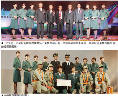 立榮航空為因應購置新機,企業識別標誌全面更新,特別於3╱30假長榮航太公司第三飛機修護廠,舉行「蛻變—立榮航空企業識別標誌(CIS)發表會」,由民航局副局長李萬里、長榮航空董事長鄭光遠╱總經理張國煒以及立榮航空董事長蘇宏義╱總經理陳憲弘等5位貴賓共同啟動飛航推桿,在絢爛歡樂的音樂燈光秀,以及全場來賓的歡呼聲中,MD-90 全新企業識別標誌飛機在眾人的期待下隆重出場,象徵立榮航空在享受長榮集團資源下全新出發,現場還邀請到了超過300 位航空業、旅遊業、貨運業與金融業的代表共襄盛舉,場面熱鬧且盛大。