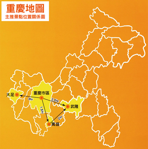 重慶,簡稱「渝」,是中國的第四個直轄市也是最年輕的直轄市,城市定位於「中國重要的中心城市,國家歷史文化名城,長江上游地區經濟中心,國家重要的現代製造業基地以及西南地區綜合交通樞紐」。在多數台灣旅客的印象中,重慶僅是一個進入長江旅遊的門戶,鮮少有人會將此地當成是一個旅遊目的地。然而現在,透過雄峰的專業的,將帶領旅客一路從萬盛、武隆、重慶南岸到大足,走遍最值得一探的風景名勝,打開台灣旅客的嶄新旅遊視野。