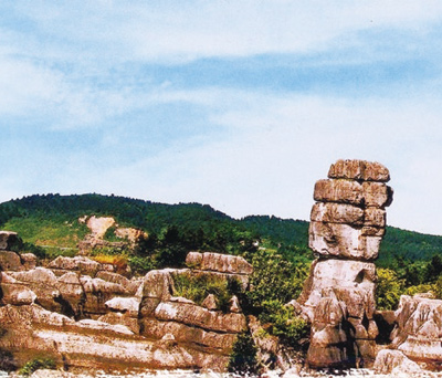 是中國第二大石林,面積10平方公里,萬盛石林屬喀斯特地貌特徵,主要有劍峰石、石鼓、石塔、蘑菇石與石芽等形態,石林群峰壁立,千姿百態,石頭多形似飛禽走獸,被地質學家稱為天然石造的「動物樂園」。