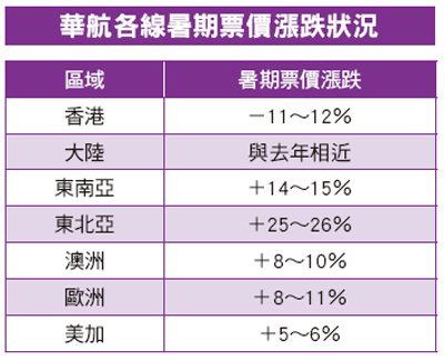 香港線:香港暑期屬於旺季,將會有成長空間,但由於供過於求、票價下跌。