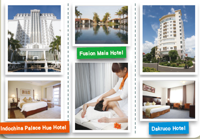 順化以及邦美蜀多以觀光飯店為主,目前邦美蜀可以提供兩間四星級酒店供產品使用。峴港部分因為美麗的海岸線而吸引大量國際知名度假村進駐,每座度假村擁有獨立管理的純淨海灘,各家也分別有頂尖SPA、豐富美食、賭場文化等等不同風情,如同珍珠一般串聯在南中國海岸。不論是在旅遊行程結束後回到飯店休息,或者是整天優雅地躺在游泳池畔看書賞浪,亦或是安排一場舒適的越式SPA,都將成為旅行過程中的甜蜜回憶,也能包裝成為產品中的一大亮點。