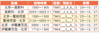 莫斯科:可中轉歐洲、俄羅斯50多座城市,北京─莫斯科航線使用 A330-300機型執飛。