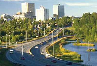 安克拉治市是阿拉斯加州的第一大城,不僅是世界航空的轉運樞紐,同時也是全州的商貿中心。整座城市聚集阿拉斯加州的一半人口,卻看不到大城市的擁擠,反而是小鎮的從容悠閒。在這裡,一年四季都有不同的主題活動。夏天的安克拉治市每天擁有20小時的日光,多樣化的特色商店,隨處可見的街頭藝人表演,是吸引人潮的主要原因。冬季萬盞燈飾點亮了這座城市,安克拉治市向來以它的社區認同感和城市卓越性受到肯定,曾先後四次獲得全美公民聯盟所頒發的全美最佳城市獎。