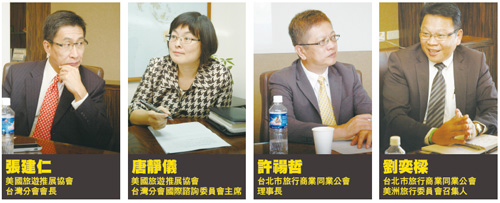 ▲(左起)美國旅遊推展協會台灣分會國際諮詢委員會主席唐靜儀、美國旅遊推展協會台灣分會會長張建仁、台北市旅行商業同業公會理事長許禓哲、台北市旅行商業同業公會美洲旅行委員會召集人劉奕樑。