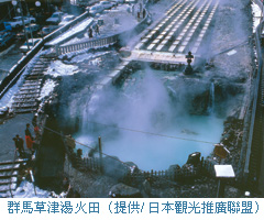 群馬縣產業經濟局觀光物產課藤田一幸表示,自大正時期,已有100多年的歷史的草津溫泉,湧泉量堪稱日本第一!同時料金僅1,000日圓,即能享受全部的溫泉設施,相當實惠。在滑雪以後,來到鄰近的草津溫泉放鬆心情,隨即能收心曠神怡之效。