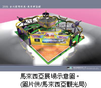 馬來西亞觀光局大手筆承租20個攤位,以開放式的動線呈列,歡迎旅客從四面八方進入展示攤位。馬來西亞觀光局台北辦事處處長艾芝藍表示,此次ITF設計理念以觀光年『馬來西亞歡迎全球』為主軸,將馬來西亞人民的熱情和友善的態度延伸到馬來西亞文化、生態、SPA、高爾夫球及飯店等主題,包括SPA Holiday、雲頂集團飯店、高爾夫等相關行程。」