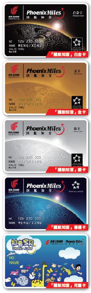 而自1994年推出的「國航知音」至目前共分為「國際知音」普通卡、銀卡、金卡、白金卡,以及專為2~12歲會員所設計的「知音寶貝」兒童卡。一路走來,不僅在服務方面屢屢創新,航空部分的合作對象有包括星空聯盟成員、代碼共享航空公司共36家;非航空合作對象則有銀行、酒店、通訊、汽車、媒體等超過150家。透過購買機票或是消費,均可累積里程,從而兌換獎勵機票、獎勵升艙、「知音商城」產品等,提供多樣化並且更加實用的獎勵辦法。除了會員本身可以享受到獎勵辦法,「國航知音」也貼心提供設置「兌獎受讓人」之服務,只需透過「國航知音網站」或「會員服務中心」即可辦理,並且60天後生效。中國國際航空更期盼與星空聯盟全體成員,攜手搭建起覆蓋全球的航線網絡,讓旅客享受順暢、便捷的空中交通服務。