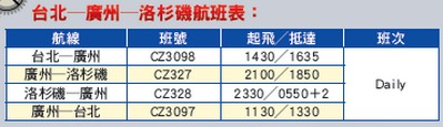 自今年10╱12起,中國南方航空公司使用空中巨無霸A380投入運營「廣州─洛杉磯—廣州」航線後,締造首飛前3天破90%的載客率、10月訂位率超過80%的佳績。而對於台灣民眾而言,得力於南航每日提供之「台北─廣州」的航班,可當日銜接「廣州─洛杉磯」,成為飛往美西的絕佳首選。
