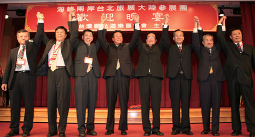 全聯會與品保協會亦於旅展期間設宴款待遠道而來的大陸朋友,張希欽與其率領的大陸參展團,與台灣6大公會理事長們以及理事、會員們是合作多年的老朋友,當晚宛如一場盛大朋友聚會,氣氛High翻天。張希欽認為兩岸旅遊交流過程中,6大公會扮演相當重要的推手角色,「而兩岸旅遊業能走到今天,業界朋友對於過程中的艱苦點滴在心頭,更清楚此次來台參展所代表的深遠意義。」他笑說,「兩岸旅遊推展還有許多工作沒完成,台灣6大公會要團結、努力完成。」晚會最後由台灣各公會獻唱「朋友」、「愛拼才會贏」以及象徵友誼如高山般長青的「高山青」,最後雙方大聲期勉「海峽兩岸觀光旅遊,誠信交流,開創新局,」並約定本月中「上海見!」
