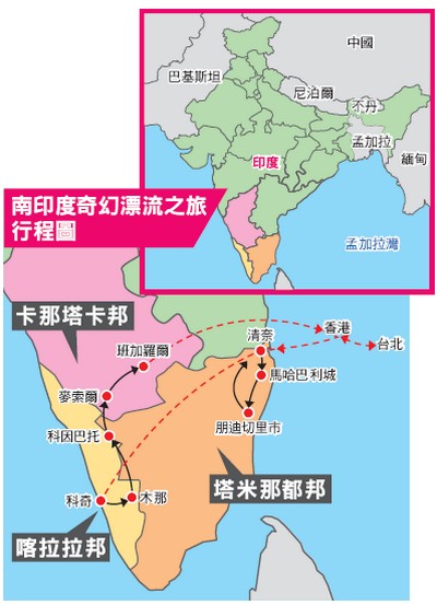 行程中,也造訪塔米那都邦首府清奈,其擁有全世界第二長的海灘,古典音樂舞蹈極為豐富,並有許多教堂及印度廟。塔米那都邦西邊的尼吉里山,是另一個聯合國世界遺產尼吉里高山鐵路所在地,該鐵路一路爬升到海拔2,300公尺,沿途一片綠意,在台灣也喝得到的金選奶茶,就是以此地茶葉製成。