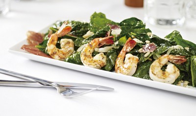Romano’s Macaroni Grill最受客人喜愛的沙拉非賣相華麗的鮮蝦溫菠沙拉莫屬,長長一盤的份量足夠4 個人吃、肥厚的新鮮大蝦咬開只覺鮮美多汁,香氣四溢,搭配義大利火腿與帕瑪森起司,佐著菠菜與茴香粉一起,鮮嫩的滋味讓人眉開眼笑。主菜磚瓦窯烤脆皮半雞以去骨半雞以特製義式香料醃製後,以磚塊壓上放入窯爐高溫烘烤形成外皮酥脆肉質鮮嫩的口感,搭配新鮮炭烤蘆筍、迷迭香薯塊與義式辣醬,雞肉香嫩多汁,散發迷人香氣,大口吃肉的開懷吃法,讓人欲罷不能。