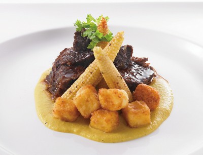 招牌前菜馬茲瑞拉起司茄子經典紅醬,以馬茲瑞拉起司和瑞可塔起司混麵皮,捲起後下鍋炸,起鍋後再淋上紅醬和蘿勒油,外層酥脆像春捲皮不用擔心會有茄子的怪味,幾乎吃不出有茄子感覺,溫潤的起司奶香,搭配最經典的店家特製蕃茄紅醬,強而有力的深沉滋味,整體不過酸也不會因為油炸而覺得膩口,是店裡最人氣的經典前菜。另一款人氣美味是燉烤牛嘴邊肉佐玉米醬,經過主廚反覆的以燉、煎、烤後呈上桌的嘴邊肉,肉中的筋都已軟爛,咀嚼毫不費勁,且越嚼越香,搭配玉米醬及北非小米塊一同入口,紮紮實實,更顯鮮甜。口味濃重的「金針花雞肉起司白醬義大利寬麵」選的是嫩雞腿肉,再以清爽好看的金針花襯色添口感,搭配濃稠、麵體富嚼勁的起司白醬寬麵,一口肉一口麵,不論吃法、口味都相當豪邁出色。