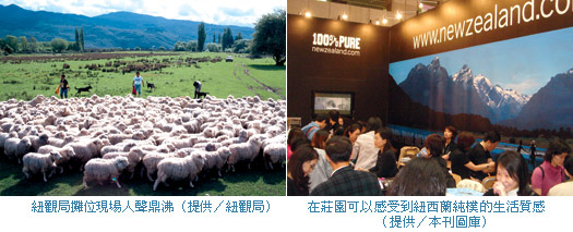 今年國際旅展百家爭鳴,推動紐西蘭觀光旅遊的要角紐西蘭觀光局在這場旅遊界盛事中全員出擊,不但要把最純淨的景致介紹給台灣民眾,更送出長榮航空PAK北島8天精華遊、台北到奧克蘭來回機票等大禮回饋民眾,攤位熱烈的氣氛讓參與讓紐觀局的工作人員對2006年多項主打的旅遊商品更具信心,新旅遊產品推動重擔亦蓄勢待發;同時,年底正好是南半球紐西蘭春夏時令,也是國人策劃紐澳旅行的旺季,紐觀局把握下半年度赴紐觀光人數成長近20%的強勁後勢,設定11月為紐西蘭文化嘉年華,讓台灣民眾全面的認識紐西蘭。