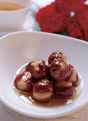最膾灸人口的新上海菜代表甜點,當屬無人不知的「心太軟」。這道將糯米糰細揉後嵌入剖開的紅棗後以糖水蜜透的甜點,到了劉永康手上又多淋上了有著優雅香氣的桂花醬,改名「桂花紅棗糯米心」,冰透著吃滋味更細緻,炎夏時來上一盤,桂花的雅與紅棗的甜,藉著糯米糰完美的融合,霎時暑氣全消。