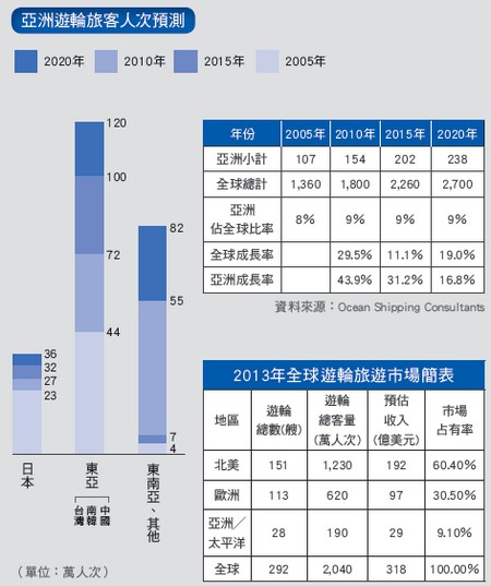 過去台灣民眾搭乘遊輪首選阿拉斯加、其次地中海、北歐等航程,動輒10多萬以上的旅費以及長天數的假期令人遙不可及。在國際豪華郵輪相繼進軍亞洲市場後,短程線的遊輪產品成為國際遊輪公司佈局的焦點,無論在船隻的調配、產品路線上均趨於多元。