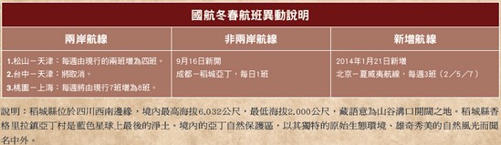 為了因應這股成長力道,國航在兩岸航線冬春航班的營銷計畫,將以補強目前各航線為主要市場策略,除了部份航線的班次將更密集外,部分航班也將改為更大機型,讓經常往來兩岸的商務及觀光遊客擁有更高的便利性和彈性,也讓銷售的業者擁有更多的籌碼運用。