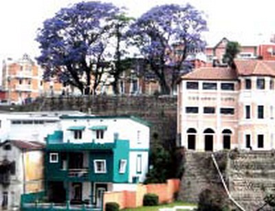 從模里西斯飛往馬達加斯加,漫步遊覽安塔那那利弗市區,城市建築混合亞、非、歐3大洲風格,漫步石砌平整路面,可見高聳的尖塔教堂、紅瓦蓋頂住宅。