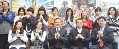 ▲韓國觀光公社台北支社支社長劉鎮鎬(左4)、濟州駐台觀光推廣辦事處處長何宜庭(左3)、韓國觀光公社台北支社課長韓廷弼(左5)、協理蕭媛晴(左6)與同仁拜年。