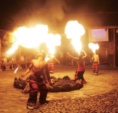 田園牧歌位於三清山東部服務中心金沙區域,總面積500餘畝,園區內有三大風情演出:西南的佤族表演、東北的搞笑二人轉、江南西道的提線木偶。佤族是一個純樸、熱情、奔放的民族,千百年來,佤族人民保留了其獨特的民族文化,他們粗獷豪邁的性格、能歌善舞,據說篝火的來源便起源於佤族人民。