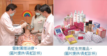 除了在安全及專業度上有優勢外,「設備」更是讓長虹診所在美白、除斑及除皺的領域上廣受好評,楊志賢分析,「目前院內擁有20~30部的新型激光雷射機器、2部高壓氧、20部高純氧,加上診所內已經成熟的配套措施,所有的醫療過程皆有完整化的作業程序及堅強的醫療團隊,以達一次可容納50人同時進行療程。」在客層部分,長虹診所目前除了台灣地區為主要客源外,華僑、港澳及日本的旅客也是客源之一,未來將著重於大陸人士來台的部分,楊志賢表示,「近期不少大陸人士都選擇住宿在台北車站附近的飯店,白天可購物,晚上可做美容療程。而『看日出、看黑斑、做美白、減皺紋,年輕又美白的回家。』是長虹診所要給予大陸人士美容+觀光全新口號。」