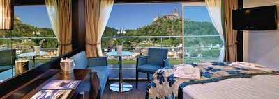 Avalon河輪每間艙房的坪數約達5.7坪(一般約為4坪),相較於其他河輪公司大了15%,不汲汲營營壓縮空間以乘載更多的旅客,只期盼給予登船的客人最優質的乘船體驗。有別於市場上訴求的陽台房,每間艙房採用法式落地窗,乘客拉開窗就可即刻將房間變成半露天陽台房,享受無障礙的視野。即便躺在床上,美景就在眼前演出。