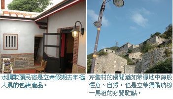 也因著提早因應高鐵議題做航線的調配,現在的離島線業績與營效表現亮眼,也將是未來推廣的重點。並且,在兩岸實施直航前,現階段將持續強化「金廈一條龍」及「馬祖-福州」小三通業務,包括中轉至內陸航點業務等,對於往返大陸頻繁的台商而言都相當便利。以去年而言,經由金廈小三通模式到達中國考察、經商、旅遊的台灣旅人,就超過62萬3千人;立榮獨家經營的馬祖線,小三通的人次也達到4萬多人,價格與時間較之港澳轉機,相對節省很多,商機潛力不容小覷。而市面上已有業者包裝廈門延伸福州、上海、無錫、崑山…等行程,最低9999元即可成行,反應亦不俗。