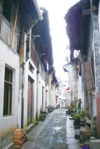 古徽州昌盛數百年的水路碼頭, 至今仍保持著古代街衢、水埠和碼頭的風貌。用鵝卵石鋪成的漁梁老街有1 公里多, 舊式店號、莊號依稀可辨。漁梁壩,全部用清一色的堅石壘砌而成,是中國現存有的古代石質滾水壩、國家重點文物保護單位。