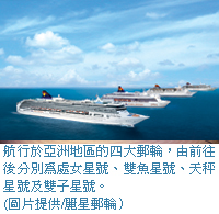 船本身的比拚,也是各家業者對消費端強調的重點,畢竟遊輪因為其價位及屬性,仍屬於高檔次的產品,因此這海上行走的宮殿可以提供的活動、設備及服務自然都必須拿來大書特書。