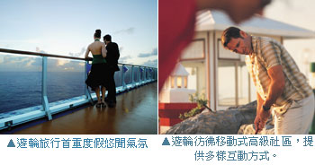 「在遊輪上一天擁有36小時的旅遊逸趣!」呂麗齡強調,扣除交通接駁、行李搬送的時間耗費,傳統旅遊其實沒有太多時間讓旅客愜意的度過難得的觀光假期,但在遊輪上,看秀、佳餚美酒、參加娛樂活動、進賭場小試身手…卻能及時的滿足,並且,除了酒精飲料外,所有服務幾乎不額外收費,也是豪華遊輪的極大賣點。甚者,遊輪上提供有氧運動、美容講座、射擊飛靶、或安排各式各樣的活動,亦讓遊客更容易享受遊輪生活,體驗航行樂趣。