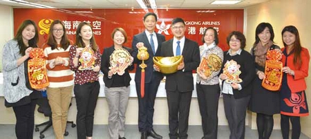 ▲香港航空台灣分公司銷售部總經理李海青(左6)、銷售副總經理莊孟翰(左5)率領同