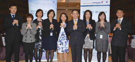 ▲馬來西亞航空大中華區總經理劉國華(左6)、台灣區總經理陳麗寶(左5)恭祝同業