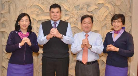 ▲泰國航空台灣區總經理齊聖禮(左2)、業務經理沈心善(左3)恭祝同業三「羊」開泰展宏圖。
