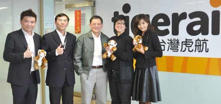 ▲(左2)吉祥航空台灣分公司首席代表陳威、(右2)財務結算部台灣區財務經理熊海鋼