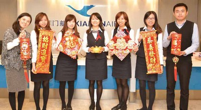 ▲廈門航空台灣分公司同仁齊賀同業羊年喜羊羊