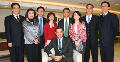 ▲國泰航空台灣及韓國區總經理賀安(中坐者)率領同仁向同業拜晚年,(後排左起)行銷部收益管理副理侯恩錫、企業傳訊暨客戶關係部副理陳怡瑄、北區業務經理陳志智、訂位暨票務部經理金曄、行銷部經理凌維謙、企劃部經理王倩玲、客運業務副理柯長基與客運業務部副理李仲良。