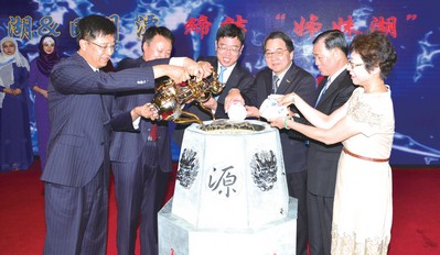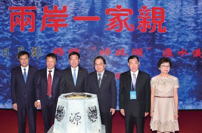 ▲沙湖與日月潭締結「姊妹湖」匯水儀式。