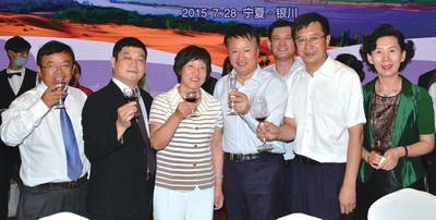 ▲(左起)寧夏回族自治區旅遊協會理事趙明霞、理事牛犇、副會長侯振剛、會長徐曉平、寧夏回族自治區副主席王和山、台旅會會長謝謂君、寧夏回族自治區紀檢組長龐俊海、
